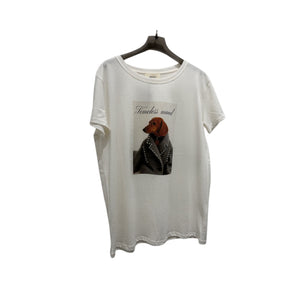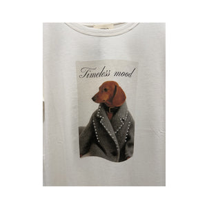 T-shirt Vicolo con stampa cane con cappottino grigio e strass